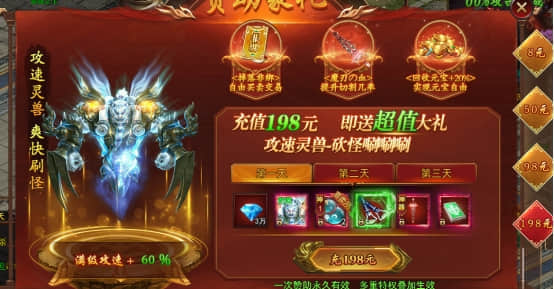 【活动内容】击杀BOSS获得装备,回收淘汰的装备之后可获得丰厚元宝奖励